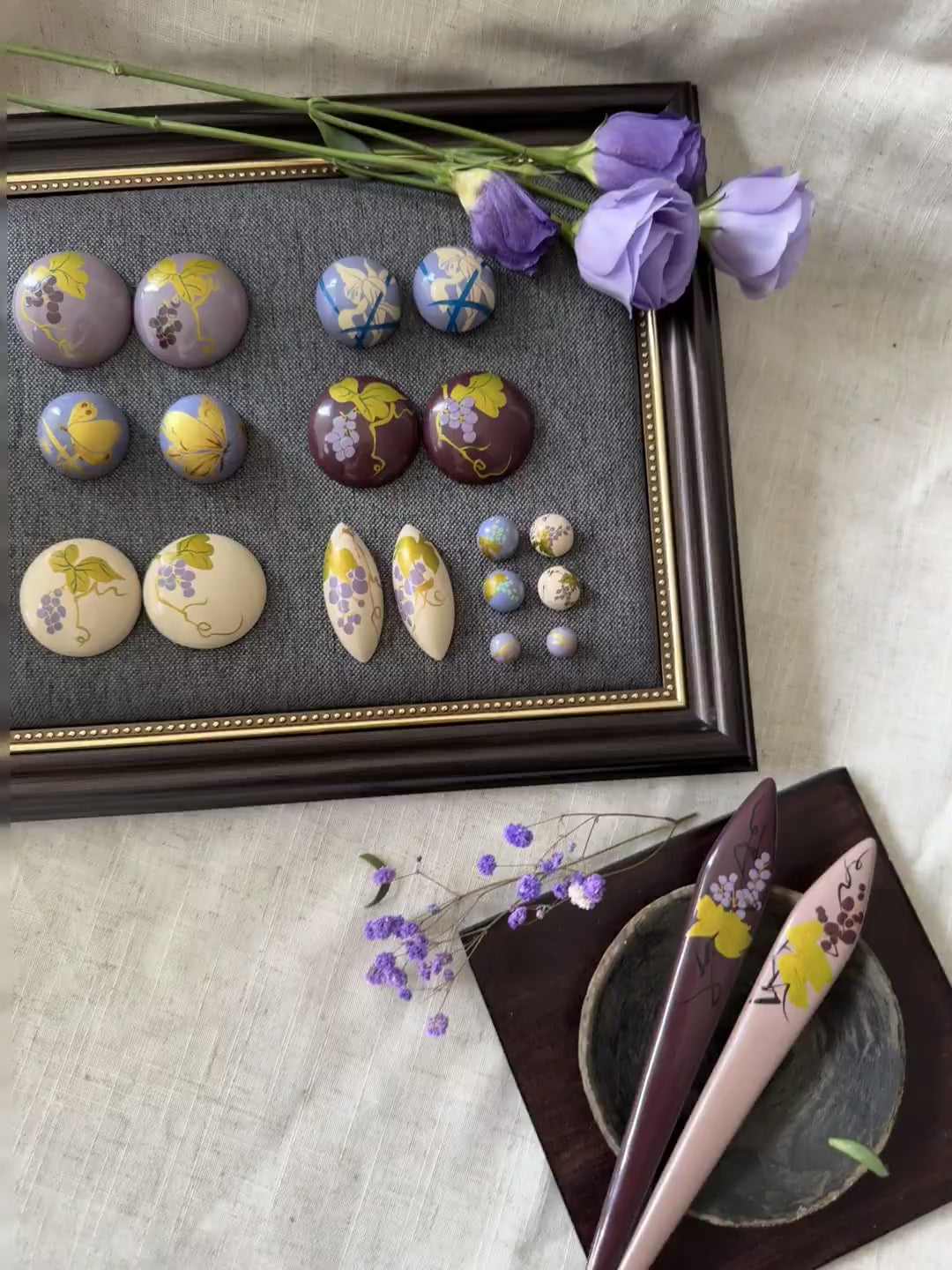 LacLume Vineyard Design Hand-Painted Earrings | Fresh Lacquer Style for Daily Looks